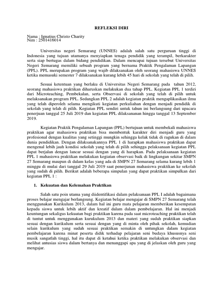 Contoh Refleksi Diri Sendiri Kingstonctz